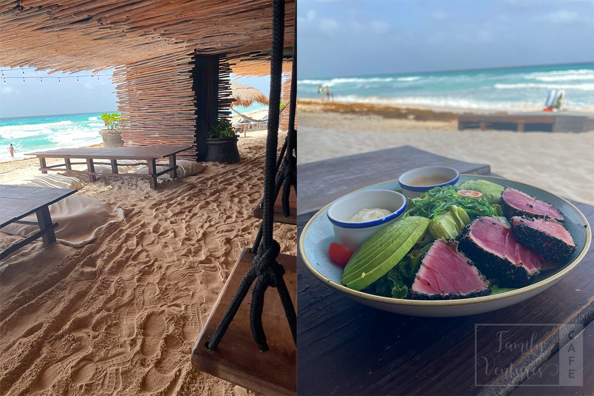 Fortunately, we bought some delicious mangoes at the Isla Mujeres beach, another rushed stop. After lunch, we had a brief opportunity to explore the island by golf cart, but again, it was too rushed to truly enjoy. We returned to the beach area by the lunch spot, which wasn’t ideal for swimming, so we relaxed on the beach beds until the boat arrived. Back at the hotel, we unwound in the jacuzzi before heading to bed, ready for the next day’s adventures. Despite the disappointments, we tried to make the most of our time and found some moments of joy amidst the rushed and less-than-ideal circumstances.